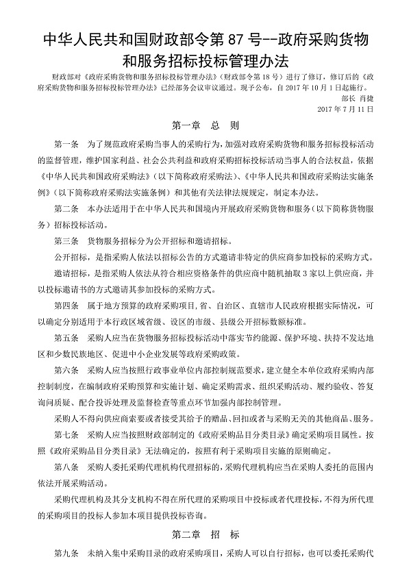 中華人民共和國財(cái)政部令第87號