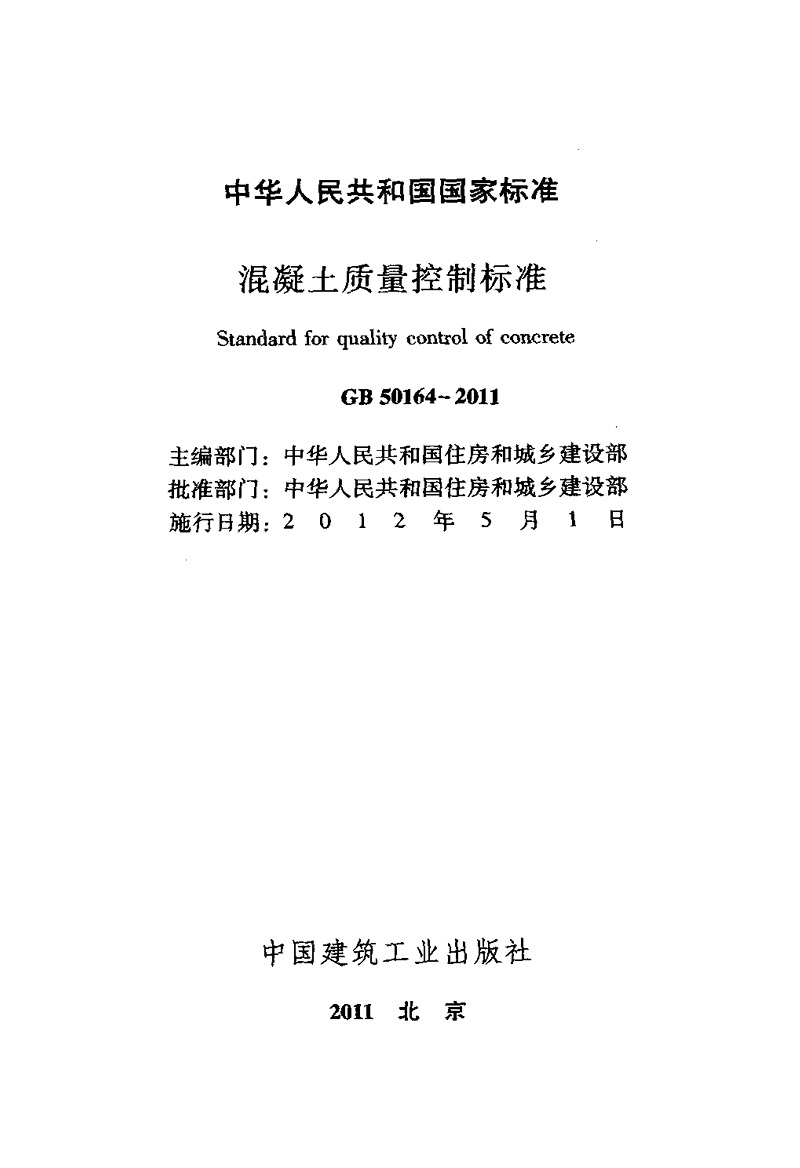 混凝土質量控制標準GB501642011
